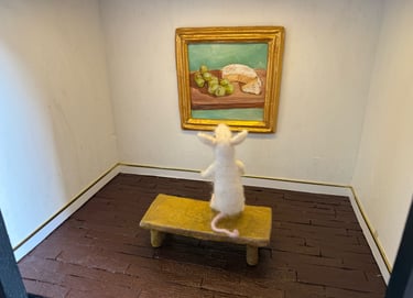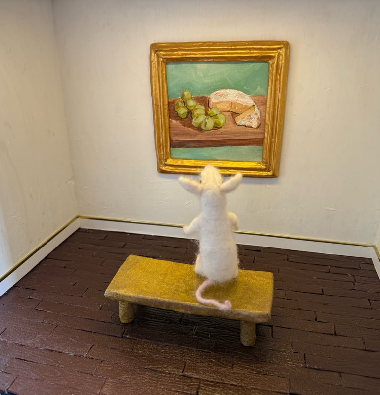 Introducing the world's first tiny traveling art gallery housed inside a vintage pie safe cabinet (and run by needle felted mice!)