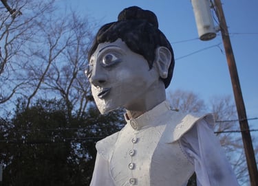 In 2025 I was commissioned by a video store in Charlotte, NC, to create an 11 foot tall paper mache mascot...